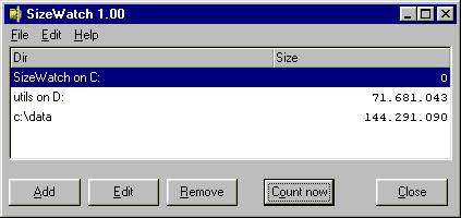SizeWatch is a utility for keeping an eye on the sizes of selected